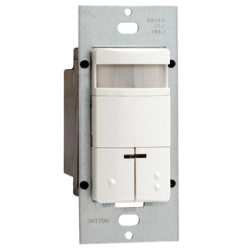 | – 180° field-of-view provides approximately 2100 square feet of coverage, suitable for a variety of commercial areas. – Segmented Fresnel lens provides optimum sensitivity and perf o r mance. Designed with an extensive “small motion” area where even slight body movements will be detected. – Horizontal field of view may be adjusted between 180° and 32° arc by using integral blinders located on either side of the lens. – Optional manual adjustment for delayed-OFF time settings of 30 seconds (for walking test), 5 minutes, 10 minutes and 20 minutes. Allows customized adjustments to maximize energy savings. – Adjustable Ambient Light Override ranges from approximately 2 foot-candles (2 lux) to 500+ foot-candles (500+ lux). – Self-Adjusting Ambient Light Override compensates for changes in lighting requirements after override level has been set. – Manual -ON / Automatic-OFF mode for installations where manual ON switching is required but automatic OFF switching is still desired for energy savings. – LED indicator light flashes when sensor detects motion to verify detection is active. – Unit beeps 3 times after delayed-OFF time expires, then waits 10 seconds before turning lights OFF. – One unit can be used for either 120V or 277V lighting. Compatible with both electronic and magnetic ballasts. – Primary relay switches at the zero crossing point of the AC power curve to ensure longer contact life and compatibility with electronic ballasts. – Unit fits in standard single-gang wallbox and replaces two single-pole wall switches; ground connection required. Gangable with other devices. – C UL / US Certified, complies with California Title 24 Energy Code and FCC Regulations. – Limited Five-Year Warranty Online Manual Complete Spec From Leviton |